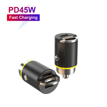 Adattatore per accendisigari per auto Mini PD da 45W ricarica rapida USB C tipo C adattatore per ricarica auto a doppia porta caricabatteria per auto