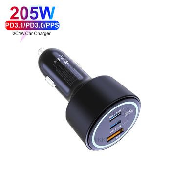 Caricabatterie auto 3 porte 205W tipo C PD3.1 140W QC3.0 USB 36W PPS 65W USB-C adattatore per Notebook Macbook