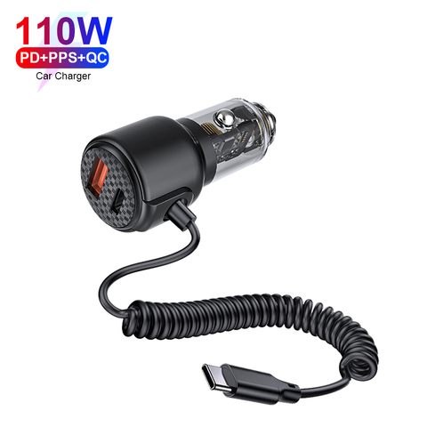 110W 2 IN 1 caricatore per auto USB tipo C cavo per iPhone Huawei Samsung cavo di ricarica veloce 65W accendisigari rapido Mini adattatore LED