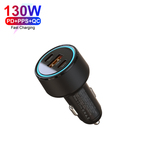 2025 nuovo arrivo PD 100W QC3.0 Mini caricatore per auto 130W doppio tipo C USB 3 porte per telefono cellulare caricabatterie veloce in auto
