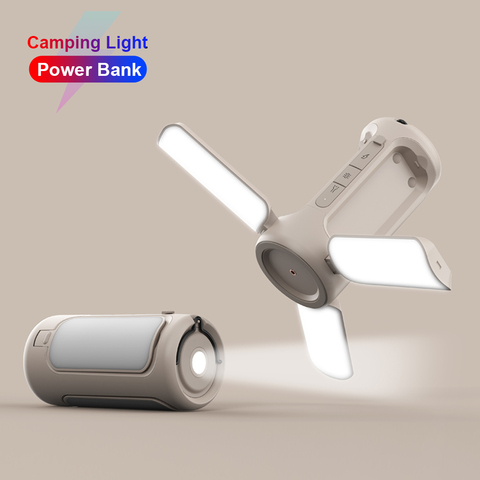 Lampada da campeggio portatile a Led lampada da esterno a lanterna ricaricabile Power Bank multifunzione emergenza LED pieghevole lampada da campeggio
