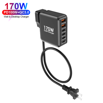 USB C pd מטען טלפון 170w 100w 65w Gan סוג C C מטען קיר נייד נייד טעינה מהיר 6 יציאות pps מטען gan עבור מחשב נייד