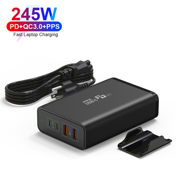 סוג c מהיר מטען pd 245w 4-יציאה gan תחנת טעינה מהירה USB בלוק מטען מהיר USB תומך 28v 5a 140w