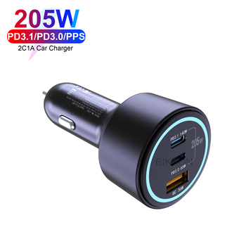 Автомобильное зарядное устройство для ноутбука, быстрая зарядка, USB, 3 порта, светодиодная 205 Вт, 140 Вт, 65 Вт, тип C QC3.0 PD3.1, супер адаптер для мобильного телефона, автомобильное зарядное устройство
